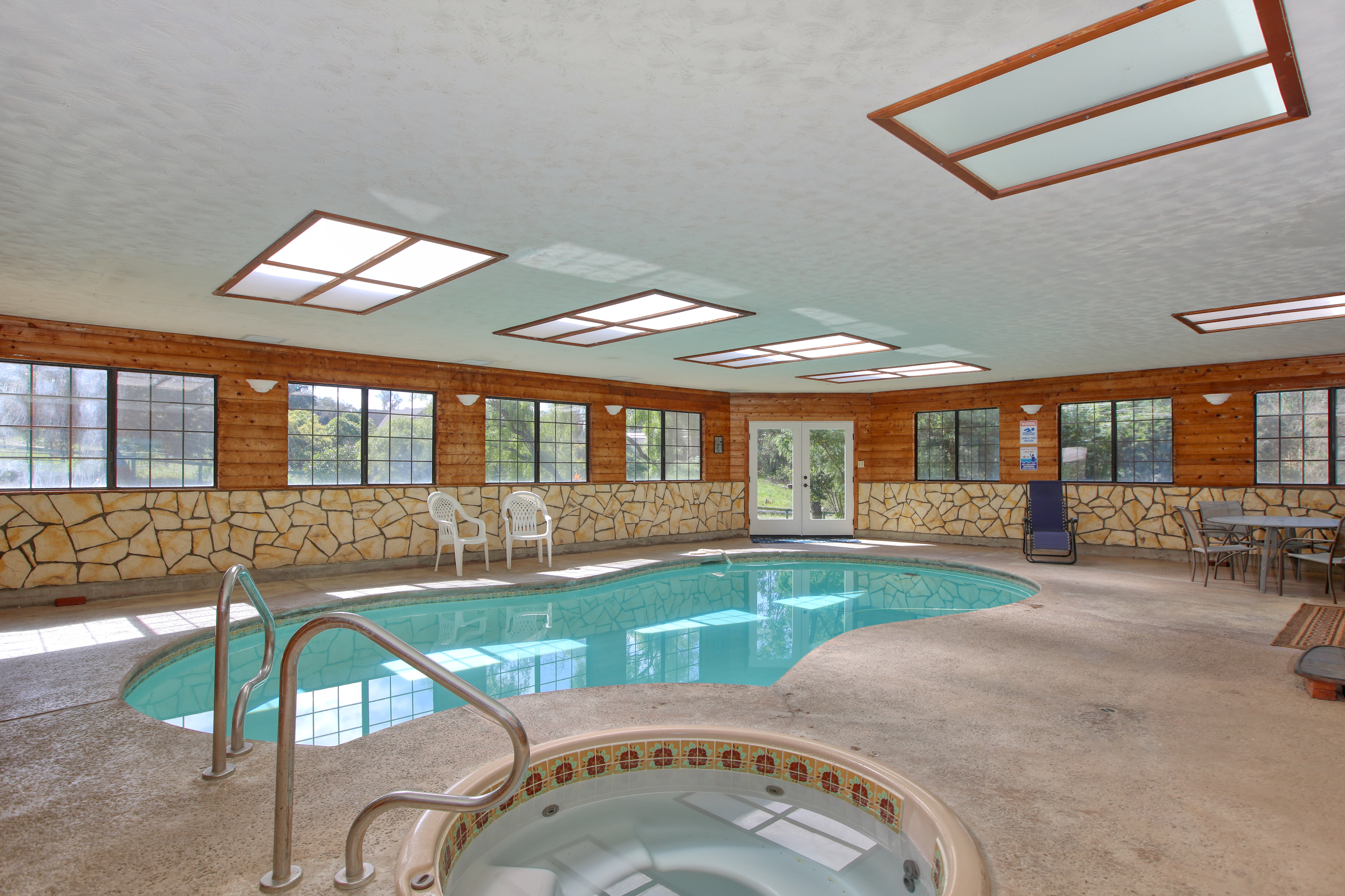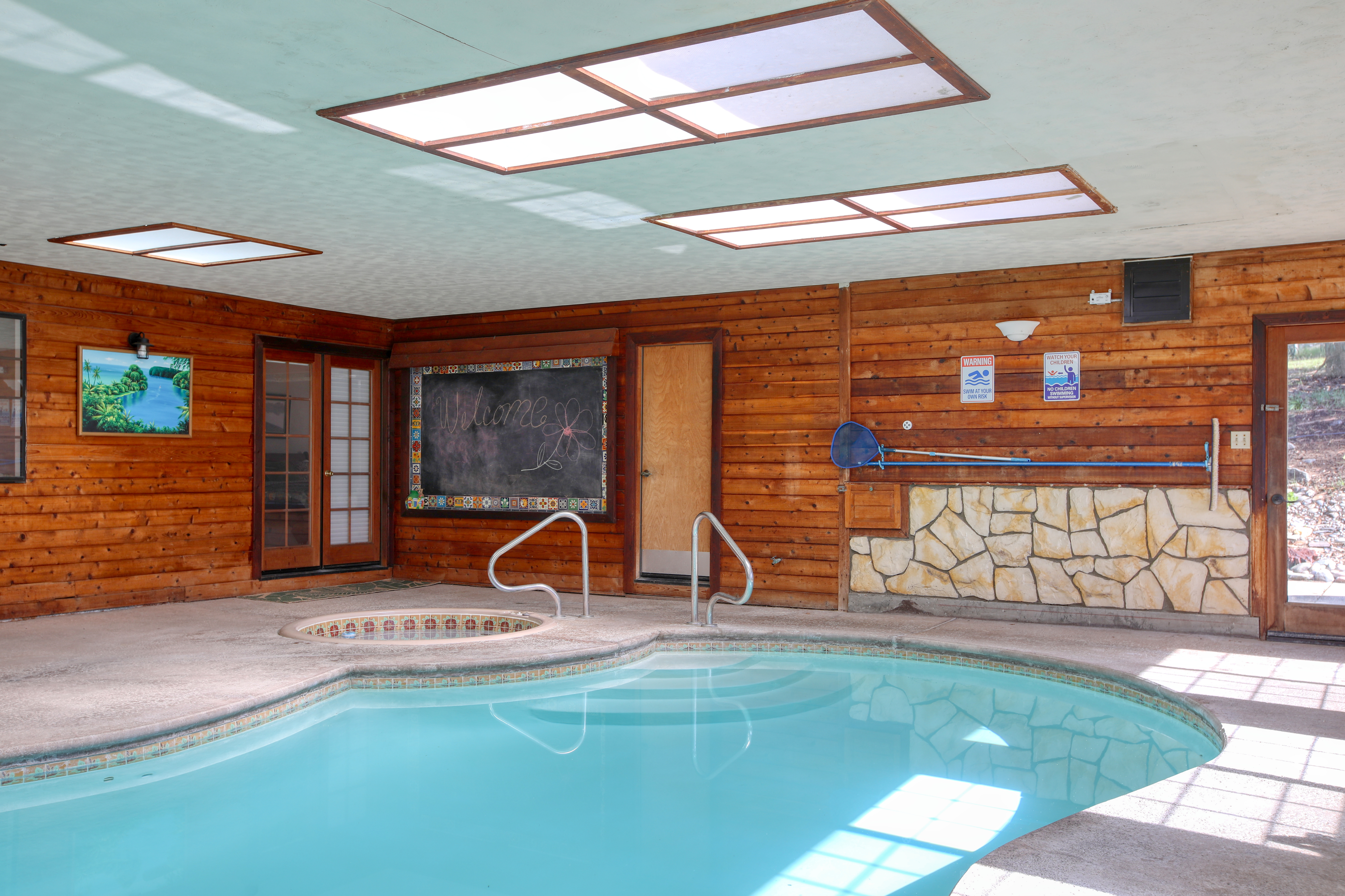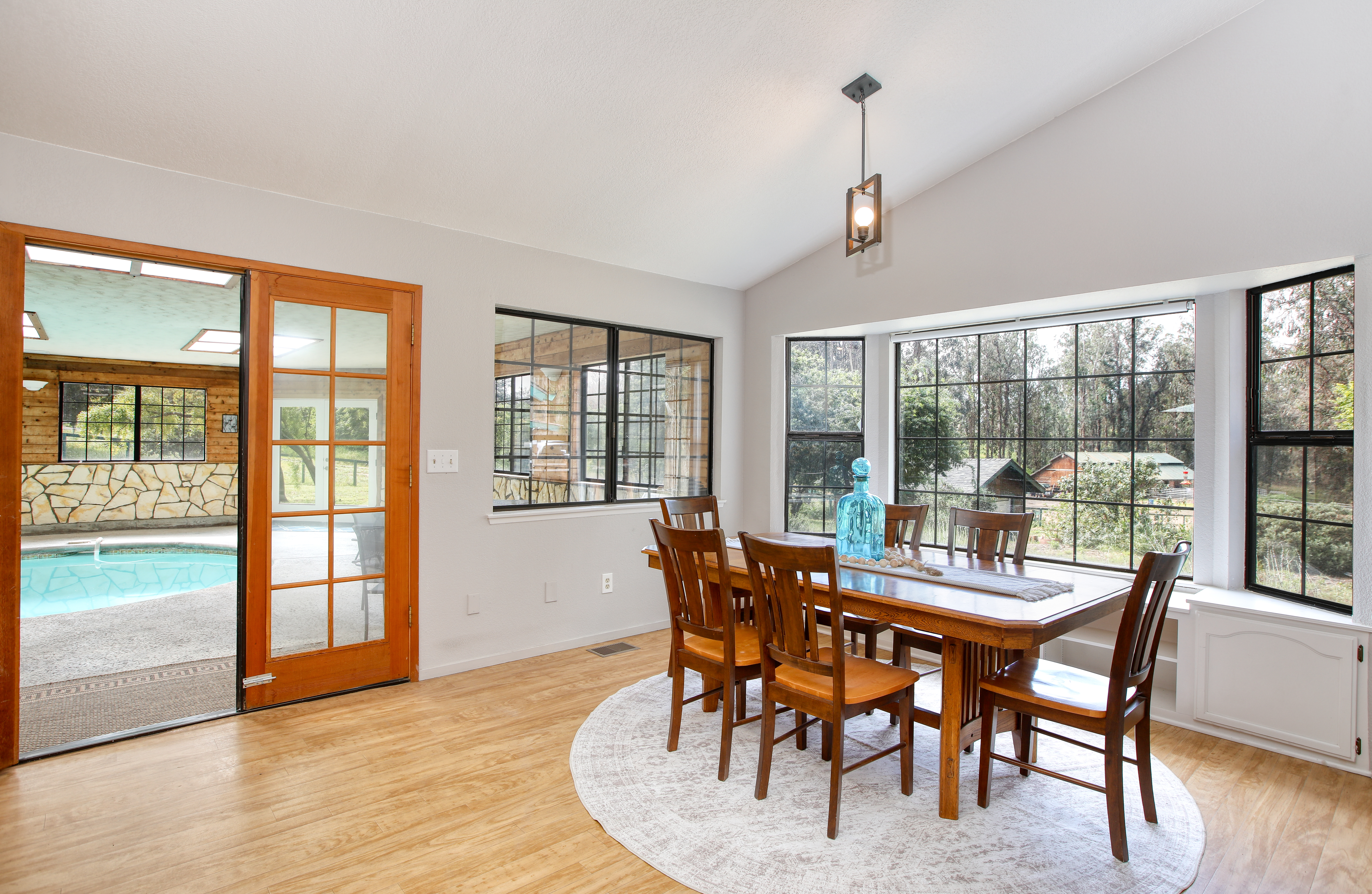 The crown jewel of this home is the spectacular indoor solarium, featuring a solar-heated swimming pool and an integrated spa. Flooded with natural light from overhead skylights, this magnificent space allows for year-round swimming. Enjoy the private sauna located in the primary bedroom suite to promote your wellness and relaxation, or light the wood-burning stove in the pool room to create a cozy, spa-like atmosphere during crisp California evenings.